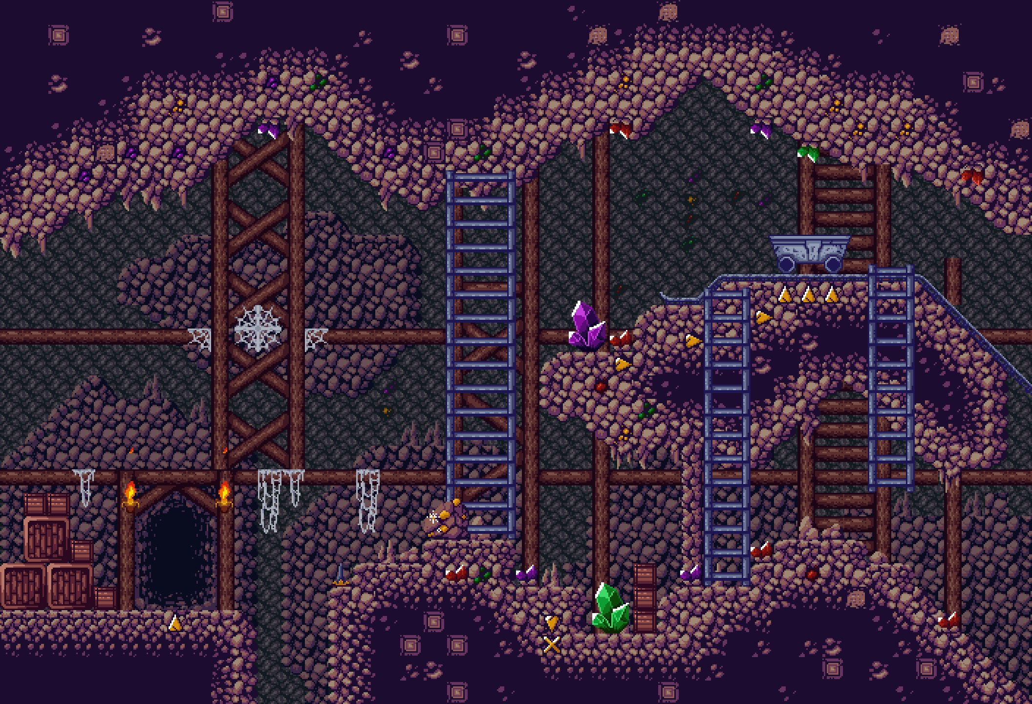 tileset mines dungeon with animation torch, mob, trap,web, crytal